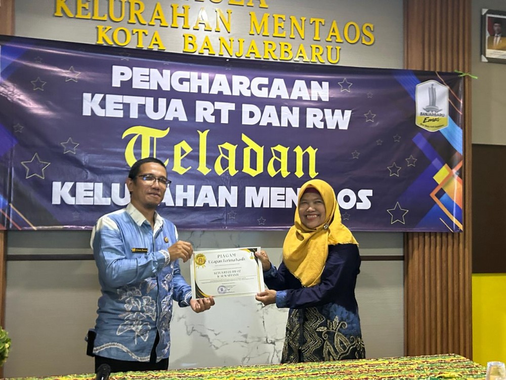 Mentaos-Tangguh (26/4/26) Upaya membangun tata kelola lingkungan dan sosial yang kuat tidak bisa dilepaskan dari peran strategis para Ketua RT dan RW. Menyadari hal tersebut, Lurah Mentaos menghadirkan sebuah inovasi yang patut diapresiasi: penilaian kinerja Ketua RT dan RW sebagai bentuk penghargaan sekaligus motivasi. Melalui mekanisme penilaian ini, ditetapkan 6 Ketua RT Teladan dan 1 Ketua RW Teladan yang dinilai memiliki kinerja terbaik dalam mengelola wilayahnya, baik dari aspek administrasi, pelayanan masyarakat, hingga partisipasi dalam program-program pemerintah.